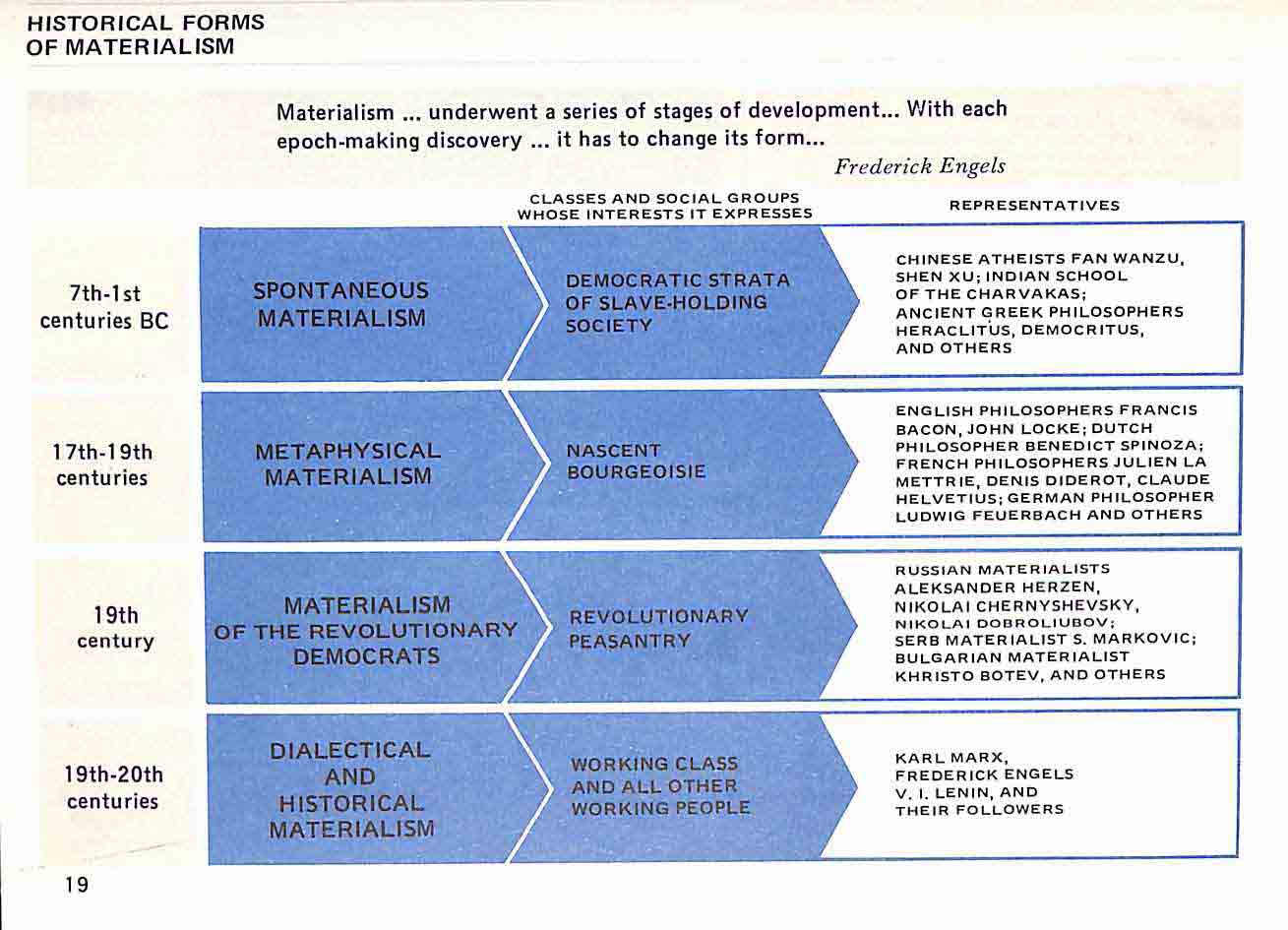 the materialist world view. In the illustration at the right we present the “Historical Forms of