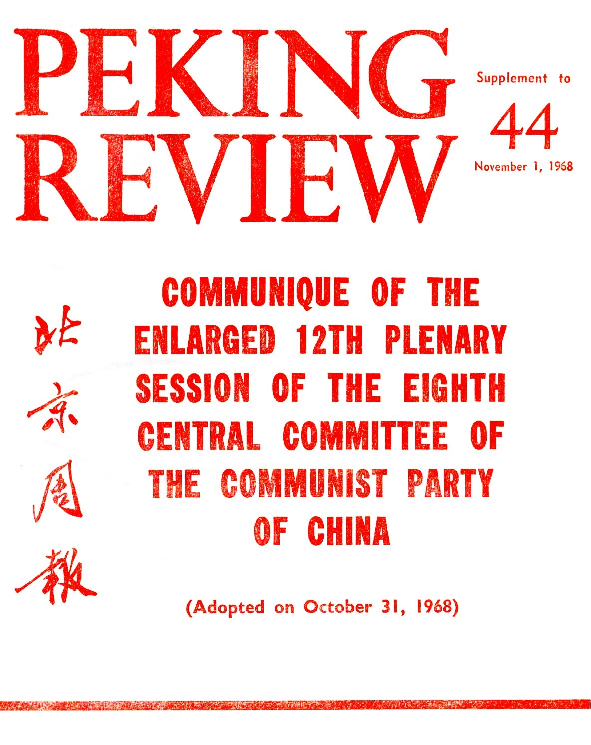 The Enlarged 12th Plenary Session of the Eighth Central Committee of the Communist Party of China opened in Peking on October 13, 1968 and was successfully concluded on October 31.