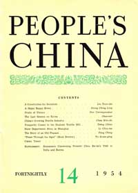 This magazine, published twice each month, was launched in English in January 1950. It also soon had editions in Russian, Japanese, Chinese, French and Indonesian. We are not entirely sure when the English language edition was terminated, but it continued at least through 1957. We believe its function was then replaced by the weekly news magazine Peking Review (which began publishing in March 1958) and the monthly feature magazine China Reconstructs (begun in January 1952). In later years only the Japanese edition of People’s China continued to be published.