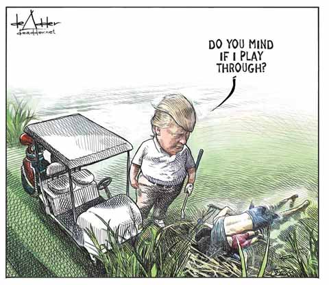 cartoon here which sardonically exposes U.S. President Donald Trump’s complete indifference