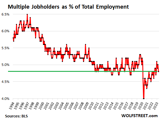jobs” are “off the books” in one way or another.) The percentage of workers with multiple jobs