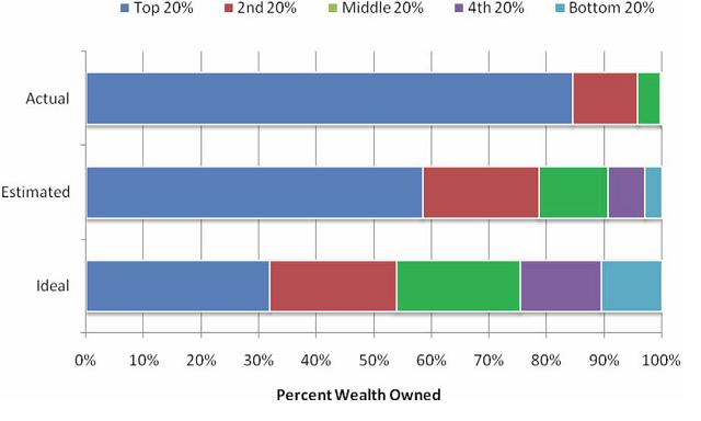 next 20%, and so forth. Also shown is what the average American thinks the wealth