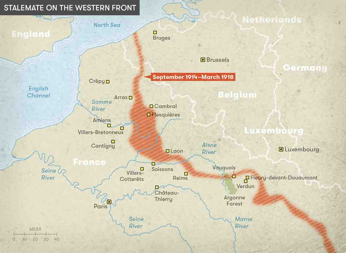 1914 to March 1918, there was a near stalemate between the two opposing armies on the Western