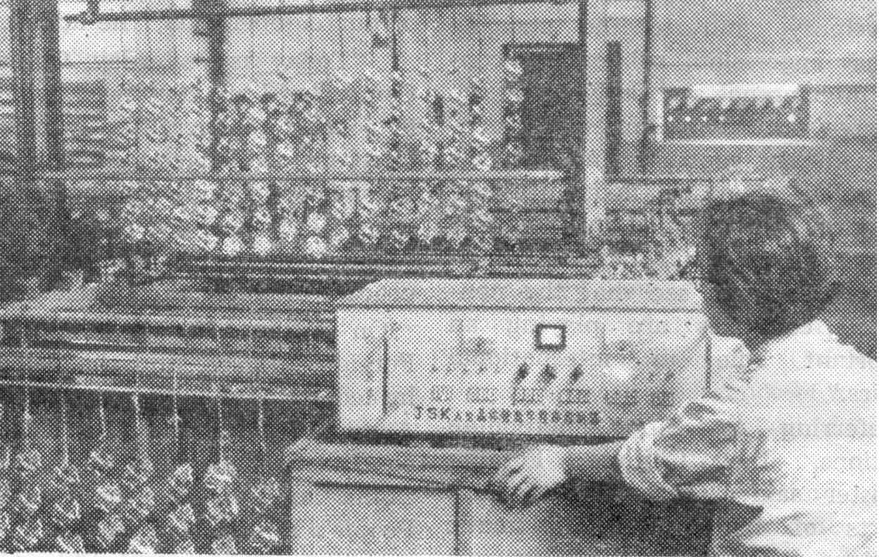 Shanghai Applies Electronic Techniques[This unsigned article is reprinted from Peking Review, #34, Aug. 25, 1972, pp. 14-15.] SHANGHAI, China’s largest industrial city, is using close to 1,000 electronics techniques in a dozen industrial branches, including the metallurgical, electrical machinery, instruments and meters, chemical, light, textile, handicraft, electric power, communications, telecommunications and medical apparatus and equipment industries. This has helped improve quality, raise the level of automation and productivity and reduce consumption of raw and other materials and electric power; it has also bettered working conditions. As the electronic industry was practically non-existent in Shanghai prior to liberation, there were no applied electronic techniques to speak of. After liberation, especially after 1958 when there was a great leap forward in the national economy, the electronic industry began to make headway. Further advances were made during the Great Proletarian Cultural Revolution. Compared with 1965, the year preceding the Cultural Revolution, the output of main raw and other materials in Shanghai for making electronic equipment in 1971 showed a big increase. The quantity and range of silicon controlled rectifiers, transistors and other semi-conductor elements as well as electronic equipment have increased many times. Output of semi-conductor elements in 1970 alone was greater than the total output for the previous ten years and the number of varieties was 61 times that of 1965. ![]() Electronic jacquard weft knitting Relatively big advances were made in applied Electronic techniques. For example, four-fifths of the electric furnaces in the city’s metallurgical industry now have silicon controlled electrode elevators. This cuts the time for each heat of steel while boosting output. Some rolling mills have also been fitted with silicon controlled rectifiers to regulate speed. The result is an increase in output and a drop in power consumption. About 60 per cent of the mercury-arc rectifiers used in the electroplating-electrolytic industry for converting alternating current into direct current have now been replaced with silicon rectifiers. This makes for stabler production, better working conditions and greater economy in power. Voltage regulators and the exciters for electric generators are among the 198 varieties of electrical appliances transistorized. Electron tubes in 35 per cent of all instruments and meters produced have been replaced by transistors, and eight kinds of electronic table and wall clocks have been trial-produced. The improved designs have simplified work processes and raised quality, while using less materials and prolonging the life-span of products. Makers of medical apparatuses and equipment, with a mind to rural and mountain conditions, have begun to use transistors instead of electron tubes in many of their products (including machinery), such as all-transistor electro-cardiographs, radio nuclide scanners and electro-acupuncture apparatus. Manufacturers of these goods have improved 63 per cent of their products and have begun batch production. Mass ActivityThe work of popularizing and applying electronic techniques is not confined to a group of professionals. Over the past two years and more Shanghai has begun to disseminate knowledge of electronics. Centres for the exchange of scientific and technological knowhow have held exhibitions on transistors and silicon controlled rectifiers and organized other forms of activities to propagate knowledge of electronics. Various industrial departments, universities and colleges and scientific research departments have joined forces to organize special training classes for mastering electronic techniques. Teachers and technicians are encouraged to combine what they teach with production needs and to build up a technical force from among the workers. Special factories making electronic parts and electronic equipment are working hard to raise the quality and expand the range of products. On their own initiative they have sent personnel out to enterprises concerned to introduce electronic techniques. Collaborating with a post office in a Shanghai district, the No. 19 Radio Factory successfully trial-produced an automated device for the parcels counter. It automatically weighs Parcels, computes the postage and issues receipts, thus reducing labour intensity and raising efficiency. ![]() Self-made electronic electroplating equipment in a small Shanghai factory. Electricians and other members of a suburban Shanjzhai people’s commune, with the help of two factories, successfully trial-produced a transistor black light lamp to elliminate insect pests. When this lamp is switched on at night it lures hundreds of kinds of insects. During a peak season the catch is two kilogrammes of moths a night. The lamp is beginning to be widely used in tlhe city’s suburbs, replacing an earlier lamp which could be used only in districts with alternating current, and then each lamp needed about 500 metres of cord connecting it to the power source. Transistor black light lamps have none of these drawbacks. Measuring leather in a Shanghai tannery before dispatch used to be a laborious, time-consuming and frequently inaccurate affair because of the irregular shapes. Some workers of the tannery, backed by their leadership and fellow workers plus help from the district scientific and technical dissemination centre, last year succeeded in making a transistorized measuring device. Now, a piece of leather, regardless of its shape, is measured and recorded once it passes through the machine. A former toy factory is also making contributions serving the peasants by employing electronic techniques. Catering for the rural people’s communes, this factory has turned out a transistor radio set that is at once a wireless receiving set, a radiogramophone, an amplifier and an intercom system. A multi-purpose device, its size is onl
