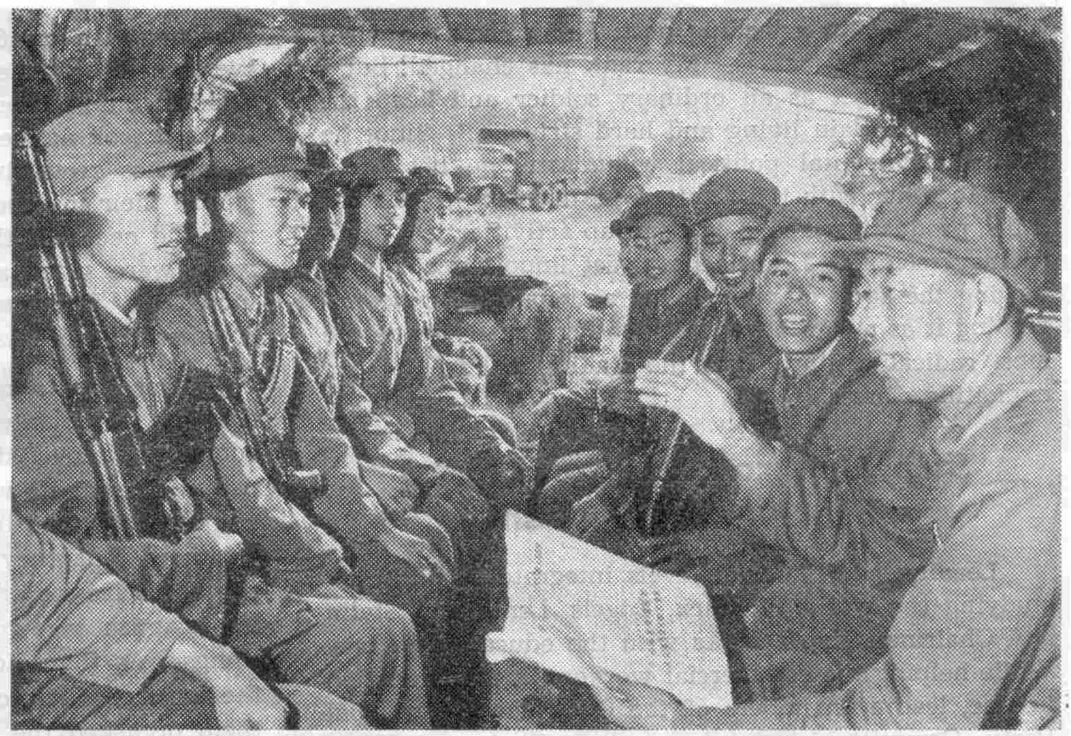 Once new fighter Liu Ching wrote a letter to the regimental Party committee, making suggestions for improving its work and expressing the hope that it would not rest content with what had been achieved. Chiang was very happy to read the letter and immediately reported it to the Party committee. He commented: “That a recruit is able to give such good suggestions shows that he has a high level of political consciousness in the struggle between the two lines. We should heartily welcome and earnestly study his proposals.” Most of the committee members agreed with him. But one member took exception: “Liu Ching came only a short time ago. What does he know?” Aware of what this comrade implied, Chiang studied together with him the teachings of Marx, Engels, Lenin and Stalin and what Chairman Mao has said concerning the correct attitude towards the masses. He related, as examples, how Marx praised the mass movement of the Paris Commune and how Chairman Mao supported the mass movement in his Report on an Investigation of the Peasant Movement in Hunan. He stressed that as leading cadres they must wholeheartedly welcome criticisms from the masses at all times. The regimental Party committee then called a special meeting to discuss Liu Ching’s criticisms and suggestions, and with its comments attached to the letter, circulated it among the companies, calling on the cadres and fighters to voice their comments to help the committee improve its work.