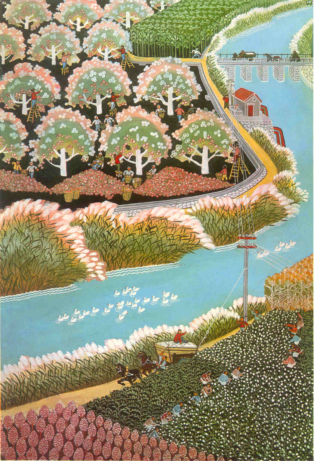 Workers and peasants in the old China could scarcely get enough to eat, so how could they have the leisure for painting? Now that they are emancipated, they feel an urge to write poetry and music and to paint to express their love for the new life and their confidence in a still brighter future. It is no accident that the Huhsien peasants took to painting during the Great Leap Forward year of 1958 when the countryside was bustling with activity.