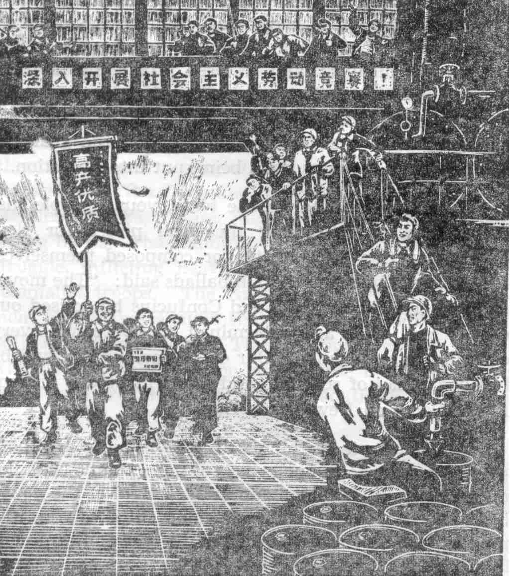 The nationwide movement to criticize Lin Piao and Confucius that began in early 1974, is a new motive force in Takang’s big advance. The southern zone of the oilfield was just opened in May and June last year. Only two months were spent to get the new wells there to produce much high-quality crude oil—a high speed “mass battle.” The daily output created by the two months’ work in this zone is equivalent to one-tenth of the oilfield’s daily capacity acquired in the previous ten years.