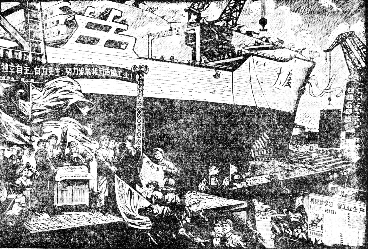 After liberation the People’s Government confiscated the property of all enemies. In pre-liberation China the biggest and most important enterprises were concentrated in the hands of the imperialists and the Chinese bureaucrat-capitalists. Enterprises of this category were confiscated according to policy and turned over to the People’s Republic under the leadership of the proletariat. After the Hungchi Shipyard became a state-owned enterprise the workers and staff were mobilized to carry out democratic reform, during which remnant counter-revolutionaries were weeded out and systems of management which fettered the workers were done away with, such as control by gang bosses. When workers became masters of the shipyard their wisdom and strength were brought into full play. Under the leadership of the Party the workers grasped revolution, promoted production and built up the shipyard in the spirit of “maintaining independence and keeping the initiative in our own hands and relying on our own efforts.” After more than 20 years of arduous struggles it was developed into a big modern shipyard fitted out with Chinese-made equipment and was able to design and build ocean-going vessels with Chinese materials.